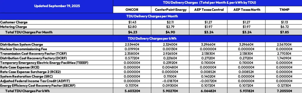 Detailed Transmission and Delivery Utility (TDU) Charges